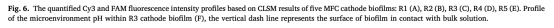 ? 數(shù)據(jù):R3陰極膜0-1000μm深度Cy3(反硝化菌)強(qiáng)度從65.45降至43.01