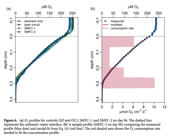 ? 通過100 μm分辨率O?剖面和伯格模型分區擬合耗氧速率,首次證實SMFCs雖改變電子傳遞路徑,但未加速總有機碳礦化(SMFCs組SOD=15.2±5.0 vs. 對照組13.1±2.6 mmol O? m?2 d?1)。