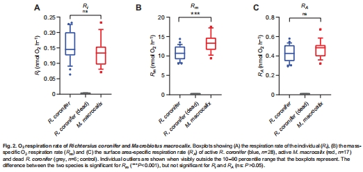 R. coronifer:Rm=10.8±1.84nmol O2mg?1h?1(n=28)