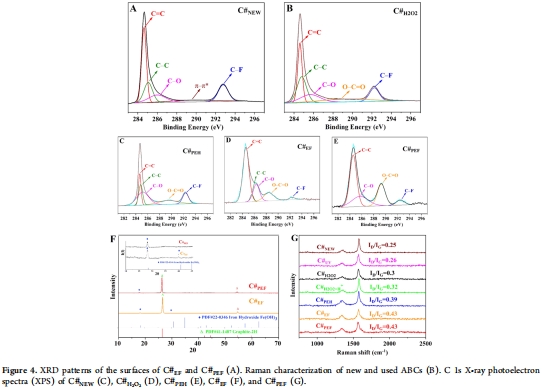 拉曼ID/IG值從0.25(新陰極)升至0.43(EF陰極),表明·OH誘導碳缺陷增加(圖4B)。