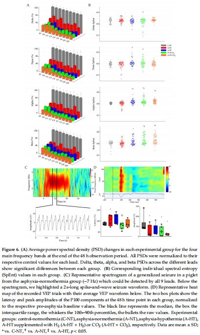 研究通過建立嚴(yán)重HIE豬模型(20分鐘窒息誘導(dǎo)),評估了低溫療法(TH)單獨或聯(lián)合吸入H?(2.1%)或CO?(分級恢復(fù)正常碳酸血癥)的神經(jīng)保護效果。結(jié)果顯示: