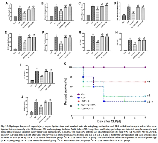 研究證實氫氣(H?)通過調控自噬與內質網應激(ERS)的交互作用減輕膿毒癥器官損傷: