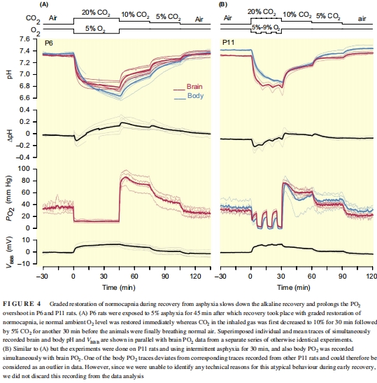 窒息時高碳酸恢復腦PO?(圖3B)。