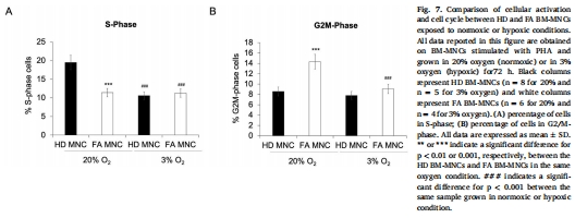 數(shù)據(jù):常氧下FA細(xì)胞G2/M期阻滯↑(圖3B),缺氧下解除(圖7B)。