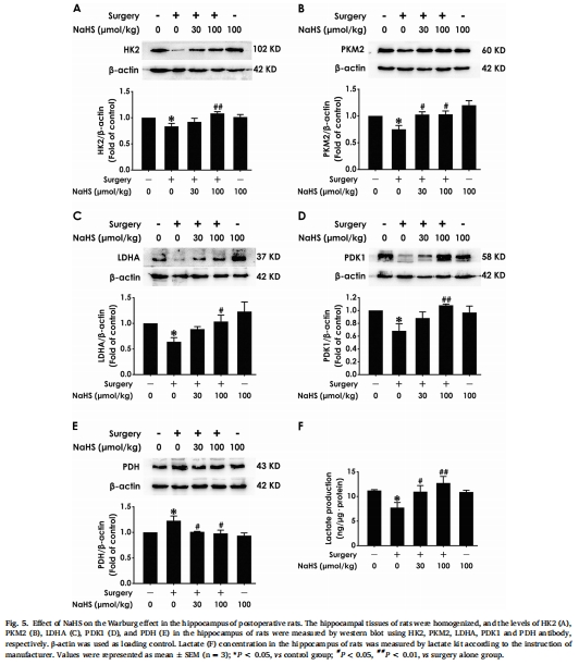 逆轉內源性H?S生成抑制:術后大鼠海馬內源性H?S合成酶(CBS、3-MST)表達下降,H?S水平降低(圖2),NaHS治療可恢復其水平。