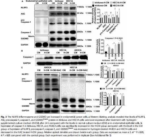 1.驗證氫氣能否激活 焦亡通路(NLRP3/caspase-1/GSDMD)抑制子宮內膜癌。