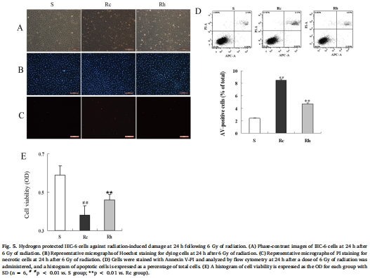 3.評(píng)估氫氣在 動(dòng)物模型(致死/亞致死劑量輻射)和 細(xì)胞模型(IEC-6腸上皮細(xì)胞)中的保護(hù)效果。