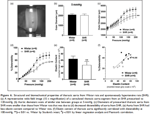 彈性蛋白含量與主動脈擴張性正相關(guān)(圖6f)。