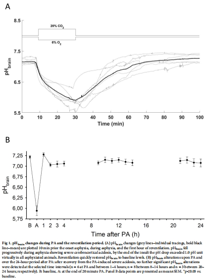 PA期間pHbrain從7.21 ± 0.03驟降至5.94 ± 0.11(嚴重酸中毒);