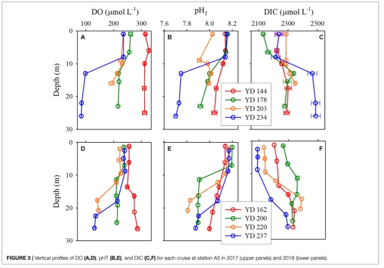 ? 數據:臺風后底層DO升高46.7 μmol L?1,pH升0.17,DIC降159.5 μmol L?1。