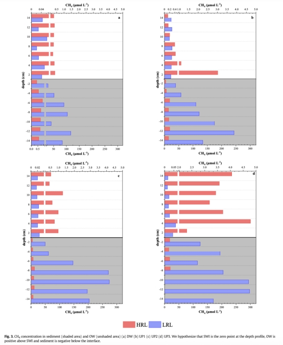 ? 數據:低水位期沉積物CH?濃度(142.79 ± 82.03 μmol L?1)遠高于高水位期(8.91 ± 6.84 μmol L?1),CO?呈現類似趨勢。