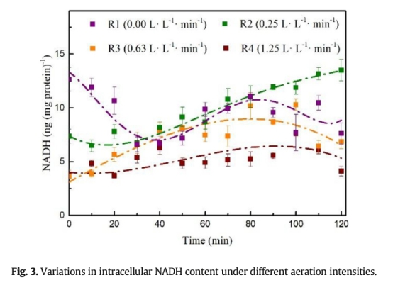 ? 數(shù)據(jù):R2的NADH積累速率(0.061 ng/(mg Pro·min))顯著高于R3(0.016)、R4(0.013)。