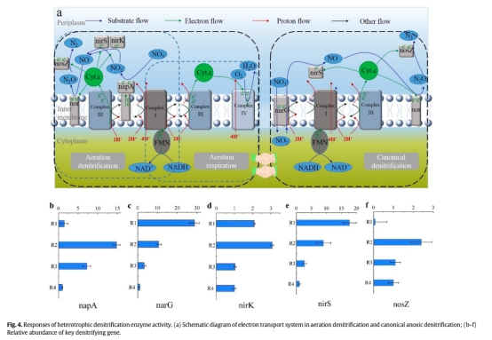 ? 意義:揭示好氧反硝化過程N(yùn)?O排放量低(nosZ基因高表達(dá)抑制N?O積累,圖4),為低碳脫氮工藝提供依據(jù)。