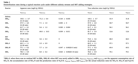 1 氮化合物濃度(NO??-N、NO??-N、N?O-N):用于計算反硝化速率,評估鹽度和MIT對反硝化過程的影響。數據來自圖1和表1。