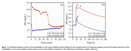1 納米氣泡曝氣具有 superior 氧傳遞效率(fD提高1.5倍)和持續釋氧能力,為生物膜提供更高效穩定的氧供應。