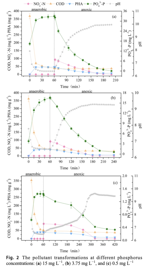 2. 過程監測:在每個運行周期內,定期監測化學需氧量(COD)、亞硝酸鹽氮(NO??-N)、磷酸鹽(PO?3?-P)的濃度變化,以及厭氧階段細胞內儲存物PHAs的合成量。