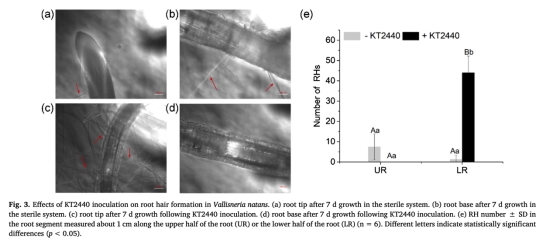 3. 根毛形成與分布(如圖3所示):量化并比較對照組和接種組根上半部(UR)和下半部(LR)的根毛數量。研究意義:證明KT2440顯著改變了根毛的分布模式(減少上半部根毛,增加下半部根毛),這種結構改變是影響氧氣損失和可能營養吸收的關鍵因素。
