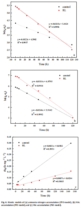 數據:PFO模型擬合顯示,RL組水解速率常數(2.43 × 10?2 h?1)比對照組(1.22 × 10?2 h?1)高2倍;酸生成速率常數(3.18 × 10?2 L mg?1 h?1)比對照組(2.44 × 10?2 L mg?1 h?1)高1.5倍。