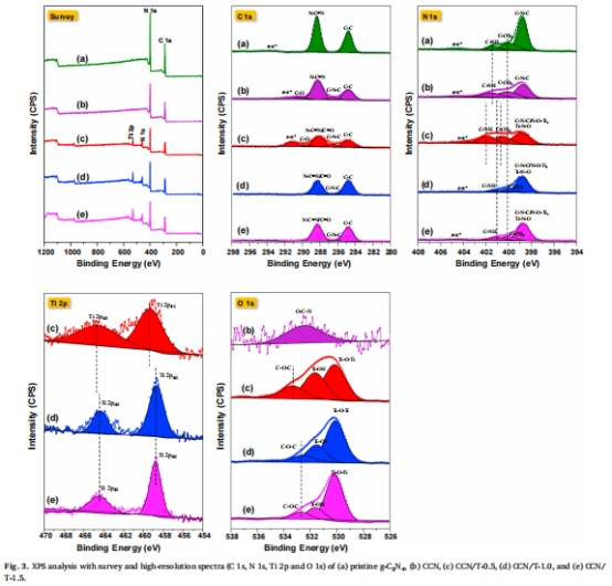 數據:FTIR光譜顯示CCN特征峰(806 cm?1和1200-1650 cm?1)隨TiO2濃度增加而減弱,CCN/T-2.0中CCN峰消失。
