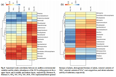 數據:硝酸還原酶活性(NRA)與NO??去除正相關;根際DO(Unisense測量)與硝化菌豐度相關。
