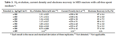 數據:在無菌新鮮培養基中,H2在-700 mV起始演化,-900 mV時速率達0.58±0.03 μM/min,電流密度為-0.31±0.02 A/m2,電子回收率91.2±4.1%。