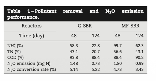 1 N2O排放和氮去除數據:來自圖1和表1,顯示MF-SBR的N2O轉化率比C-SBR降低34.3%,TN和NH4-N去除效率分別提高22.4%和39.5%。研究意義是證實磁場在低溫下能有效抑制N2O排放并提升脫氮性能,為污水處理提供經濟高效的技術選擇,避免昂貴溫控設施。