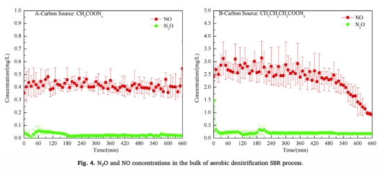2 盡管丁酸鈉能提高脫氮效率,但乙酸鈉是更好的碳源選擇,因?yàn)槠洚a(chǎn)生的NO和N2O排放較低,減少了環(huán)境風(fēng)險(xiǎn)。