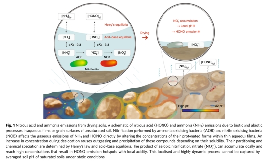 土壤和沙漠生物結(jié)皮干燥過程中的微觀pH變化影響HONO和NH3排放