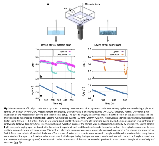 3. 平均土壤pH與微觀水膜pH數(shù)據(jù):模型預測局部pH分布,顯示干燥過程中pH空間異質(zhì)性增大(Supplementary Figs. 1 and 2)。研究意義在于表明整體pH測量無法捕捉微觀變化,局部pH偏差是氣體排放的關(guān)鍵驅(qū)動因素。