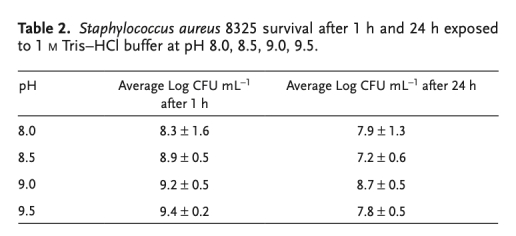 4. pH單獨作用評估數據:將金黃色葡萄球菌暴露于pH 8.0-9.5的Tris-HCl緩沖液中1小時和24小時,其存活率僅略有下降(約1個對數單位),遠低于涂層接觸殺滅的效果(4-5個對數單位)(表2)。研究意義在于排除了所觀察到的pH升高范圍(8.0-9.5)是導致細菌大量死亡的主要原因,表明涂層的抗菌活性是多種因素協同作用的結果,而非單純由堿性環境引起。