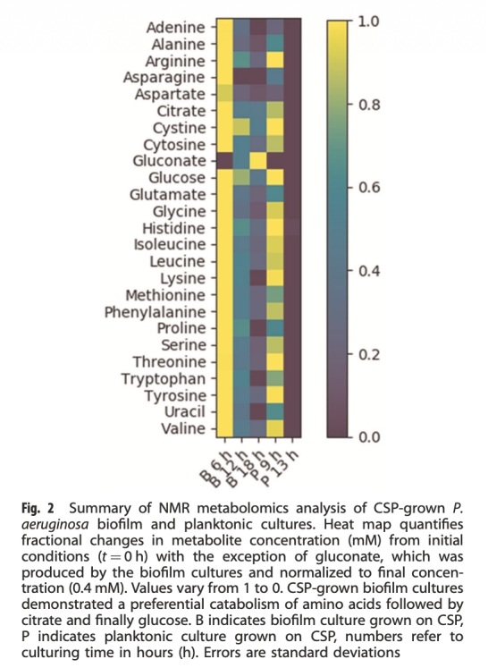 研究目的是明確證實銅綠假單胞菌生物膜中是否存在反向雙峰表型,此前該表型僅在浮游培養物中被描述。通過外代謝組學和蛋白質組學,填補生物膜代謝表型的知識空白,為理解生物膜在慢性傷口等環境中的適應機制提供基礎。