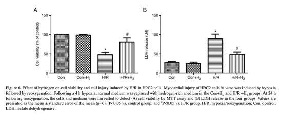 5 細胞活力和LDH釋放數(shù)據來自圖6。研究意義是評估細胞毒性,氫提高H9C2細胞活力并減少LDH泄漏,說明氫減輕細胞損傷。