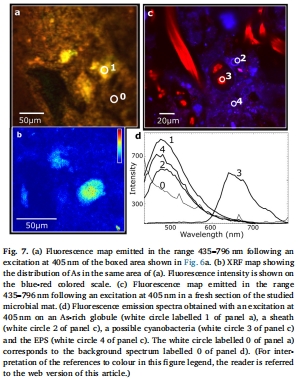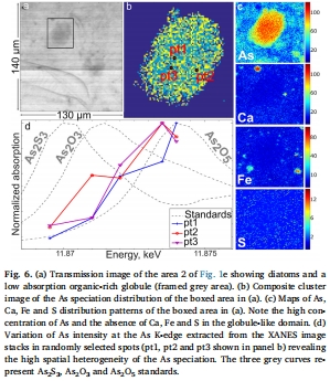 數據:As(III) 和 As(V) 的分離圖譜,以及在一個有機質球狀體(Figure 6)中高砷但缺乏其他金屬的信號。