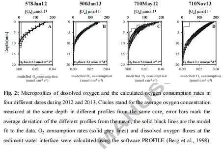 數(shù)據(jù):沉積物-水界面以下O?濃度的垂直分布(毫米分辨率)及計算出的耗氧速率。
