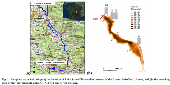 摘要指出,鈾在略超過地球化學背景的污染系統中,其自然固定過程對評估環境風險至關重要。本研究以法國圣克萊芒湖(Lake Saint-Clément)(位于前鈾礦開采區下游)的沉積物為對象,通過結合微電極剖面、孔隙水化學、X射線吸收光譜(XANES/EXAFS)和化學提取法,分析了沉積物柱狀樣(深度0-50 cm)中鈾的形態和遷移性。研究發現: