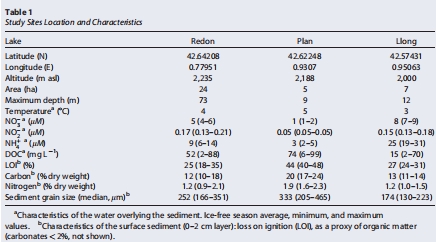 站點選擇與采樣:選取西班牙比利牛斯山脈3個高山湖泊(Redon、Plan、Llong;表1),代表不同深度(9-73 m)和熱 regime。2015年采集25個未擾動沉積物巖心(?=6.35 cm),確保原狀界面和上覆水。