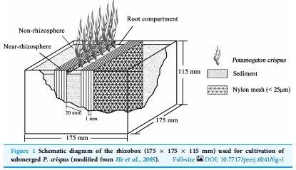 實(shí)驗(yàn)設(shè)計(jì):使用三室rhizobox(根區(qū)、近根際5亞區(qū)、非根際)培養(yǎng)P. crispus,模擬根際微環(huán)境(Fig. 1)。