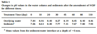 pH時序變化:上覆水和沉積物pH在覆蓋后顯著升高(Day 10峰值:上覆水8.46,沉積物8.64),隨后波動但維持堿性(Table 1)。