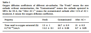 研究意義:k值從污染陰極的6.9×10?? cm/s增至AC+處理后的8.7×10?? cm/s(提升34%),證明孔隙清潔改善氧傳質(zhì),是性能恢復(fù)的關(guān)鍵指標(biāo)。