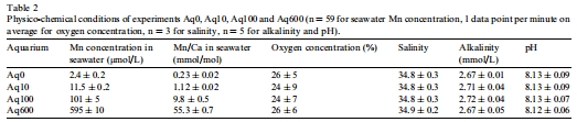 實驗設計:在4個水族箱(Aq0–Aq600)中設置不同Mn濃度(2.4–595 μmol L?1),培養兩種有孔蟲(A. tepida來自Loire河口,B. marginata來自Gullmar Fjord),持續2個月。環境參數(溫度12°C、鹽度34.9、pH 8.13)保持穩定。