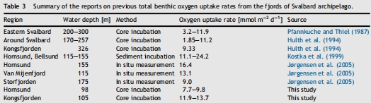 Total benthic oxygen uptake in two Arctic fjords (Spitsbergen) with different hydrological regimes