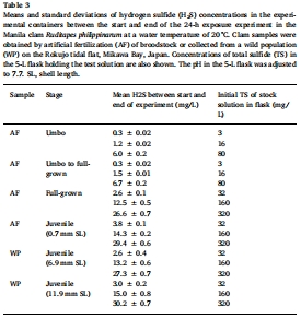 菲律賓馬尼早期拉蛤仔對缺氧和硫化氫耐受性和溫度依賴的變化