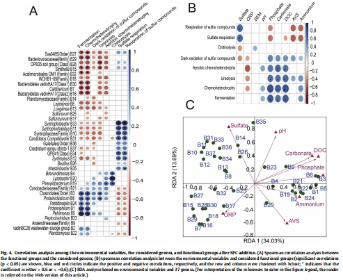 具有發酵、尿素分解和化學異養能力的微生物增加,表明SPC間接提供了電子受體和供體,改善了微生物代謝。SPC劑量應優化以實現原位修復的最佳效益。