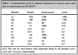 水樣收集與分析:采集Luina、Queenstown和Wuhan水樣,使用ICP-OES分析金屬離子濃度(Table 1)。
