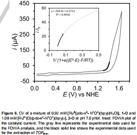 數據:循環伏安(Fig. 4B)顯示催化電流隨循環次數增加;恒電位電解(Fig. 4C)電荷量證實催化過程;FOWA分析(Fig. 6)得TOFmax=2.4–3.4 × 10? s?1。