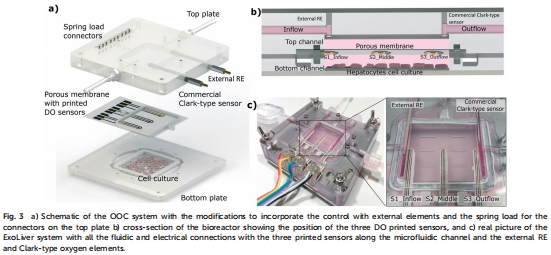 在芯片上的肝臟系統中使用集成的噴墨打印傳感器進行在線氧監測