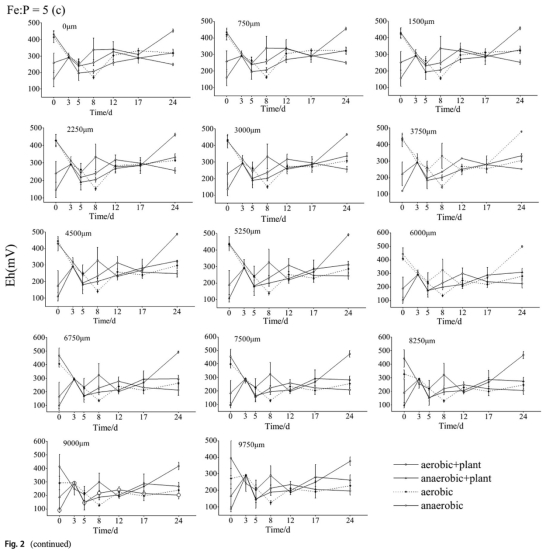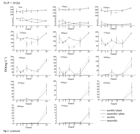 摘要闡述了本研究探討人工通氣和鐵輸入對濕地土壤中碳和磷轉(zhuǎn)化的影響。人工通氣改變土壤表面氧化還原條件,而鐵輸入在波動(dòng)氧化還原條件下影響碳和磷循環(huán)。通過比較好氧和厭氧條件,研究發(fā)現(xiàn)鐵添加能影響磷形態(tài)和有機(jī)碳耦合,但這種效應(yīng)依賴氧化還原條件。實(shí)驗(yàn)設(shè)置不同F(xiàn)e/P比(5或10)和溶解氧濃度(高>6 mg/L,低<2 mg/L),監(jiān)測溶解氧、氧化還原電位及元素變化。結(jié)果表明,溶解氧濃度分層,隨土壤深度減少而隨時(shí)間增加;氧化還原電位波動(dòng)升高。鐵結(jié)合磷占總磷45%,表明湖泊具有高內(nèi)部磷負(fù)荷。鐵添加影響元素循環(huán),但過量鐵可能導(dǎo)致環(huán)境風(fēng)險(xiǎn)如富營養(yǎng)化。