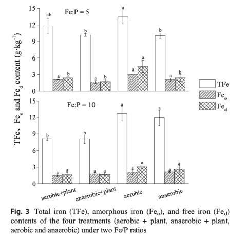 3 鐵含量數(shù)據(jù):來自圖3,包括總鐵、無定形鐵和游離鐵含量。研究意義是鐵氧化物轉(zhuǎn)化影響磷吸附能力,無定形鐵與有機(jī)碳相關(guān),表明鐵在碳穩(wěn)定中的作用。
