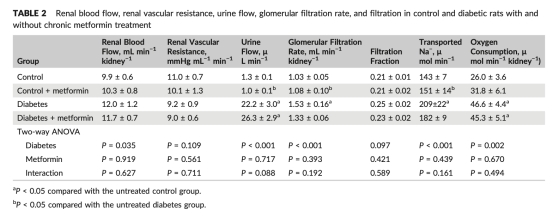 3. 腎血流、GFR、鈉轉(zhuǎn)運(yùn)和氧消耗 [來自表2] - 研究意義是顯示糖尿病增加腎血流和代謝活性,但二甲雙胍不改變這些參數(shù),進(jìn)一步支持其效應(yīng)不依賴于血流動(dòng)力學(xué)或過濾功能變化。