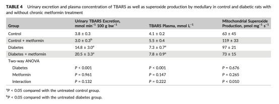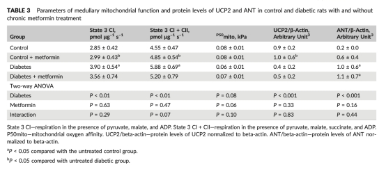 5. 超氧化物生產(chǎn)和氧化應(yīng)激標(biāo)記(TBARS) [來自表4] - 研究意義是表明糖尿病增加氧化應(yīng)激,但二甲雙胍差異性地影響線粒體超氧化物產(chǎn)生,提示其可能通過調(diào)節(jié)活性氧物種影響UCP2活性。
